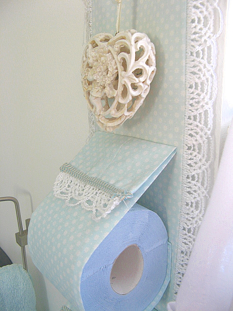 Deshalb habe ich mir aus Stoff einen Halter genäht und nun hängen die Ersatzrollen dekorativ an der Wand.